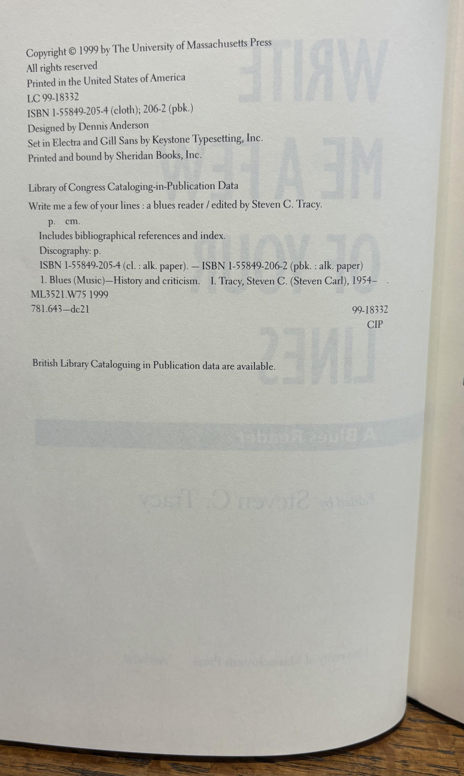 Near fine first edition. Binding square and tight. Pages clean and unmarked. Very slight spine lean. Slight bumping to ends of spine. Very minuscule residue to textblock. Slight wear to bottom corner of back cover. No dust jacket as issued. An academic book on some of the most prominent writings about the blues published between 1911 and 1998.
